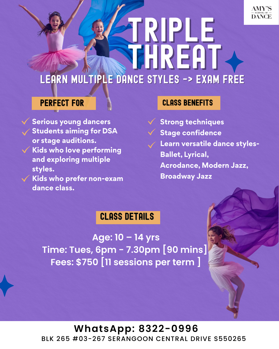 It aims to develop confident, stage-ready performers. Students will explore and train in diverse dance styles, gain valuable performance opportunities, and prepare for DSA and stage auditions.
